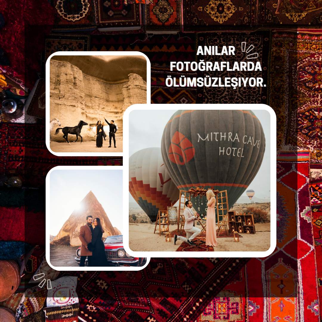 Kapadokya’da fotoğrafçılık, sadece bir iş değil, bir tutku ve sanattır. Her fotoğraf, Kapadokya'nın büyüleyici manzarasında bir anı yakalamak için özenle seçilmiş kadrajlardan oluşur. Fotoğrafçı, her detayda duyguyu, atmosferi ve doğal güzellikleri yakalayarak, sadece bir kare değil, bir hikaye sunar. Kapadokya’nın masalsı atmosferi, her fotoğrafın arkasındaki ilham kaynağıdır. Hem profesyonellik hem de samimiyetle, her müşteri için özel anlar yaratılır, bu eşsiz coğrafyada unutulmaz anılar birer sanat eserine dönüşür.